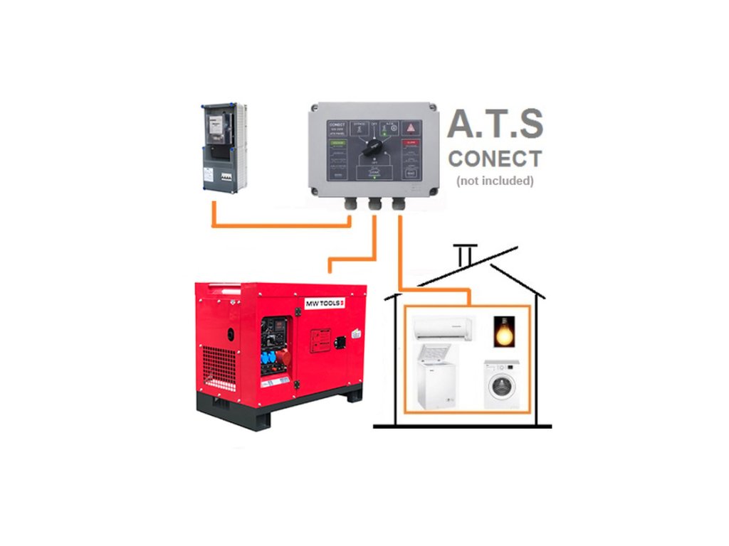 - ATS je znám také jako „Dvounapájecí automatický přepínač“ a je určen k připojení generátoru k síti budovy