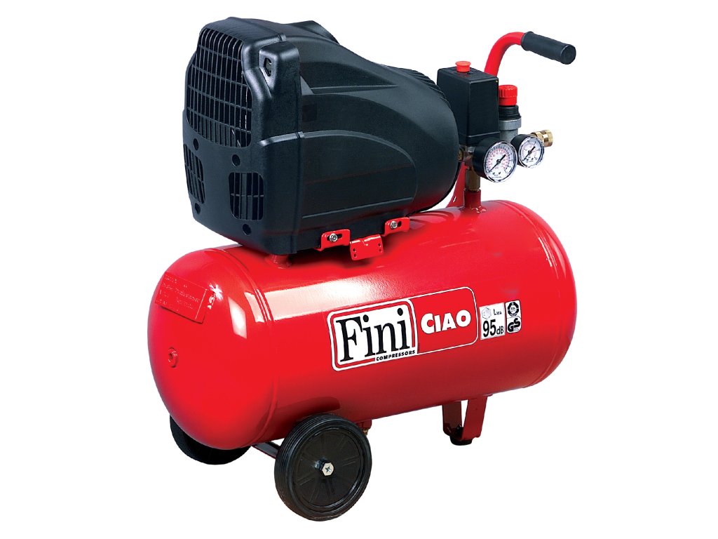 Bezolejový pístový kompresor Fini Ciao 25/1850 na 24 l tlakové nádobě s plnícím výkonem 115 l/min pro ofukování, domácí údržbu, foukání kol Nechcete se starat o kompresor a jednou za čas potřebujete dofoukat kola u auta, vyfoukat závlahu, očistit ponk v dílně nebo v létě dotlakovat sud s pivem. Tak jste našli ideálního pomocníka, který nepotřebuje výměnu oleje a stačí jen občas vyčistit filtr.