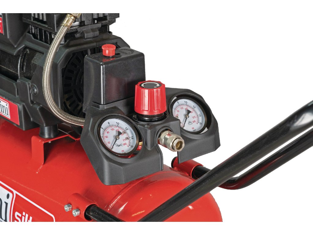 Bezolejový pístový kompresor Fini Siltek TB24/1,5 HP na 24l vzdušníku. Velmi nízká hlučnost, pouze 59 dB(A), je ideální používat kompresor například v restauracích k čepování piva. Dále je vhodný k dofukováí kol, ofukování v dílně, jako zahradní pomocník, čištění nářadí, vyfukování závlah a podobné menší práce.