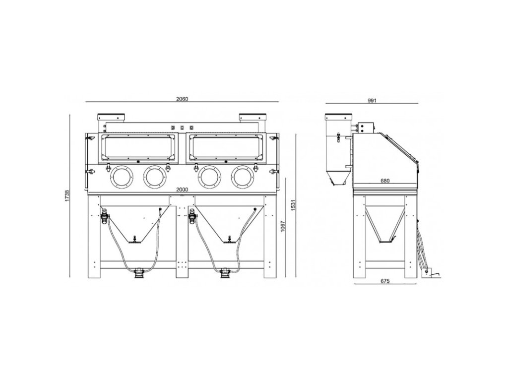 Dvojitý pískovací box s externím cyklonovým odsáváním MW-TOOLS CAT880FC