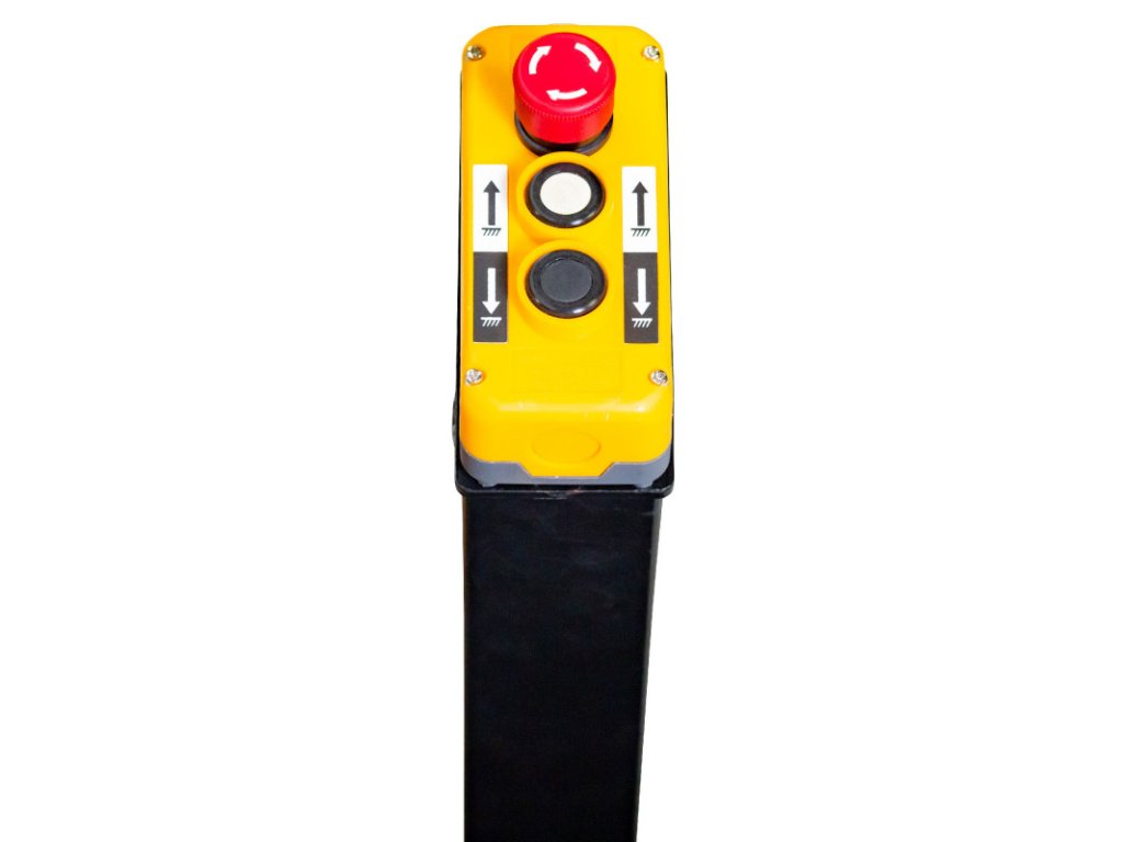 - Samostatná 24V stojací řídicí jednotka s 2metrovým kabelem, tlačítkem nahoru/dolů a nouzovým zastavením. Ochrana proti stříkající vodě IP54