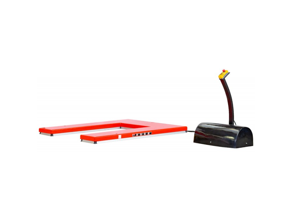 Zvedací stůl typu U je vhodný pro vjezd s paletovým vozíkem bez rampy .