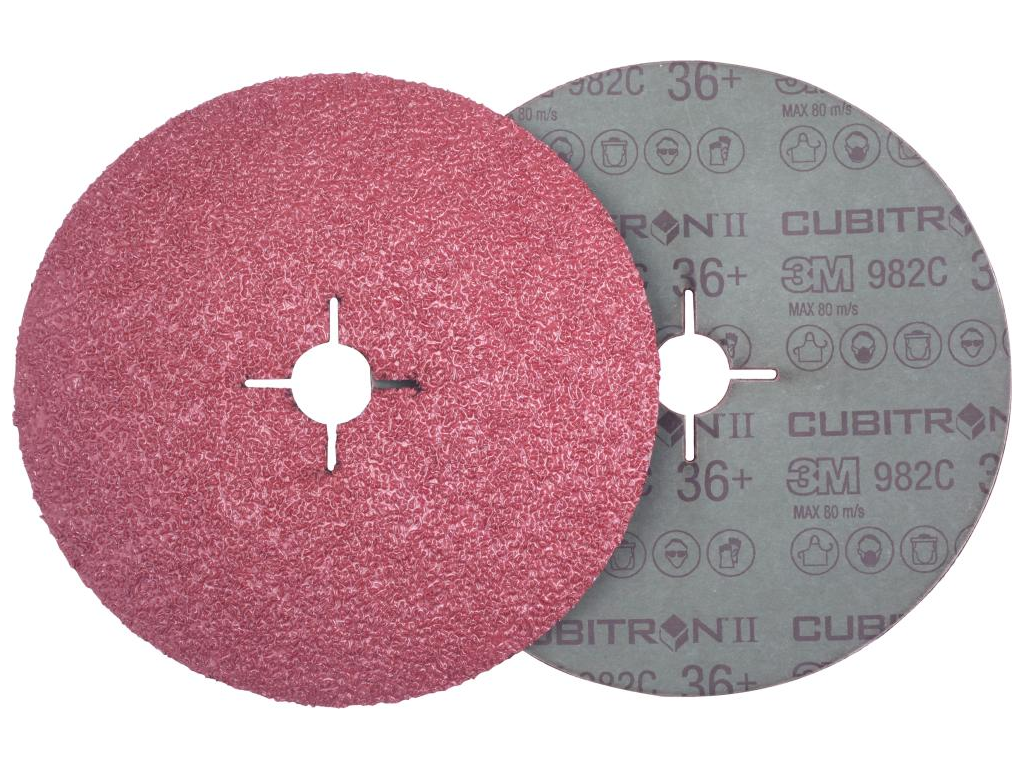Provedení: Precizní zrno (Cubitron™ II) na tkanině z vulkanizovaných vláken v pojivu z umělé pryskyřice, rovnoměrný a polootevřený posyp. Jednotlivá keramická zrna brusiva Cubitron™ II jsou přesně vytvarovaná do trojhranu, mají stejnou velikost a jsou pevněna svisle na nosný materiál. Trojhranná zrna jsou na nosném materiálu umístěna rovnoměrně, avšak náhodně tak, aby každé trojhranné zrno mohlo vytvářet dvě hobliny. Vysoce agresivní chladné broušení s největším a o 30% rychlejším úběrem materiálu s 3krát delší životností.