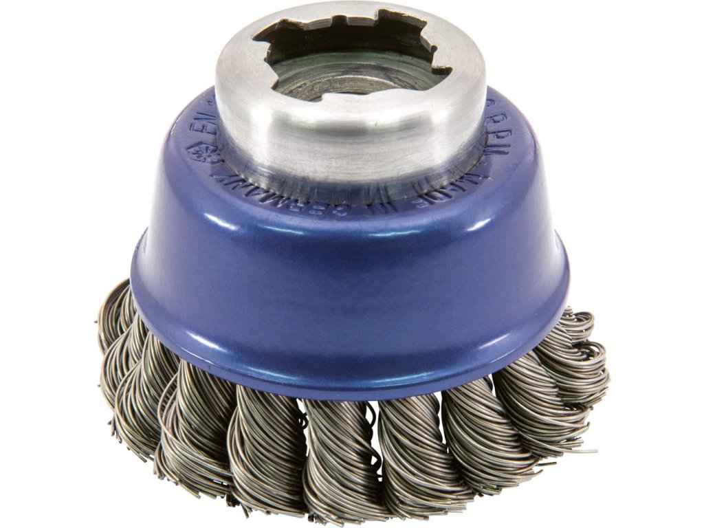 Provedení: Agresivní provedení s copánkovým drátem. Vhodný pro všechny běžně prodávané jednoruční úhlové brusky, chod bez nevyváženosti. Kombinovaný úchyt X-LOCK a závitový úchyt M14.