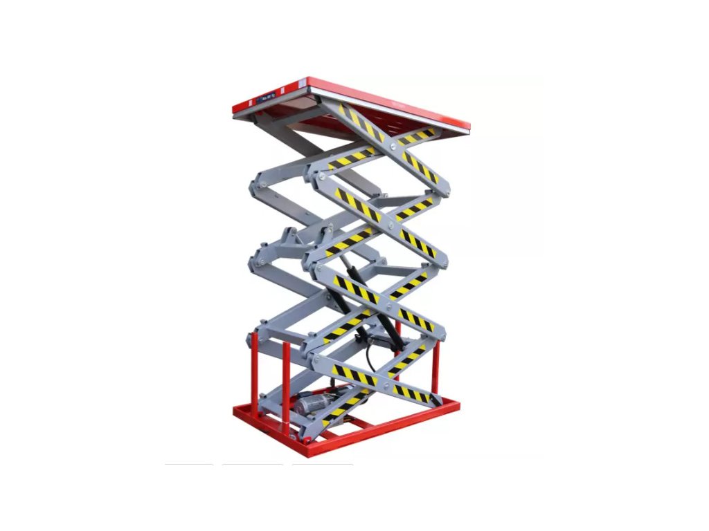 Elektrohydraulický nůžkový zvedák s výškou 4200 mm a nosností 800 kg.