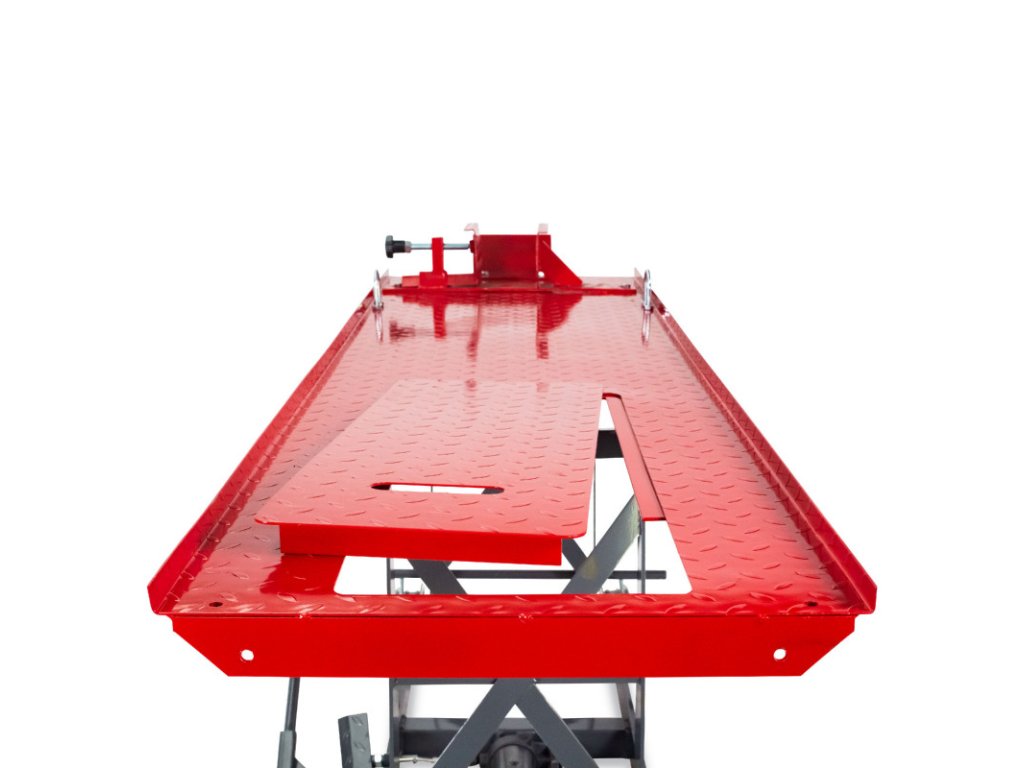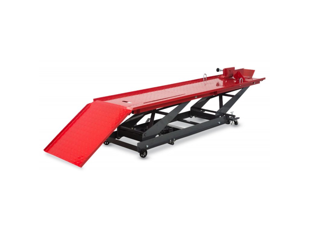 Hydraulický zdvih 450 kg při šířce stolu 520 mm. Vhodné pro motocykly.