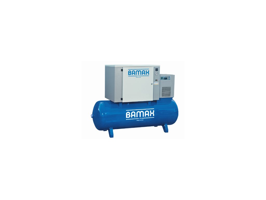 Stacionární kompresor Bamax SILENT s 500l tlakovou nádobou a sušičkou je tichý, řemenem poháněný kompresor navržen tak, aby vyhověl specifickým potřebám všude tam, kde je potřeba nízká hladina hluku.