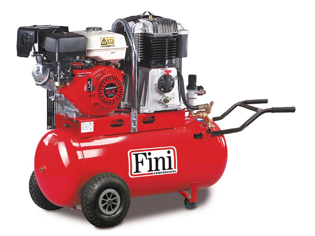 Kompresory s pohonem pomocí spalovacího motoru a maximálním tlakem 14 bar pro provoz bez elektrické energie. Na 100l tlakové nádobě a plnícím výkon 510 l/min. Mobilní model s benzínovým motorem, pro staveniště, silniční stavby nebo zemědělství