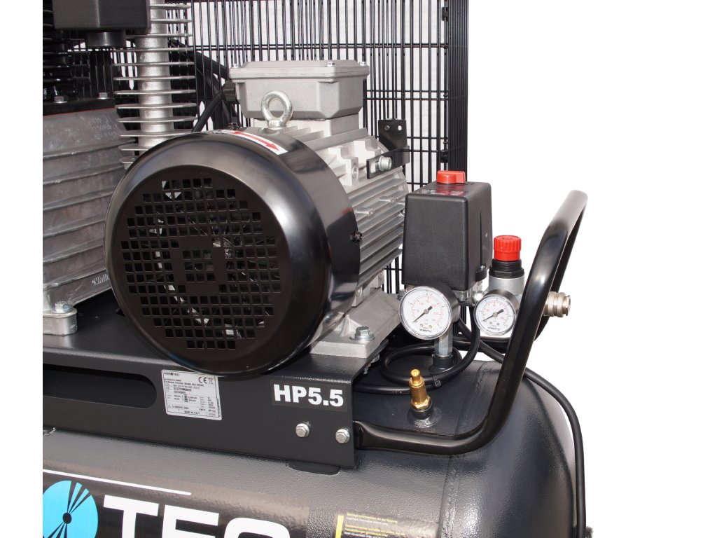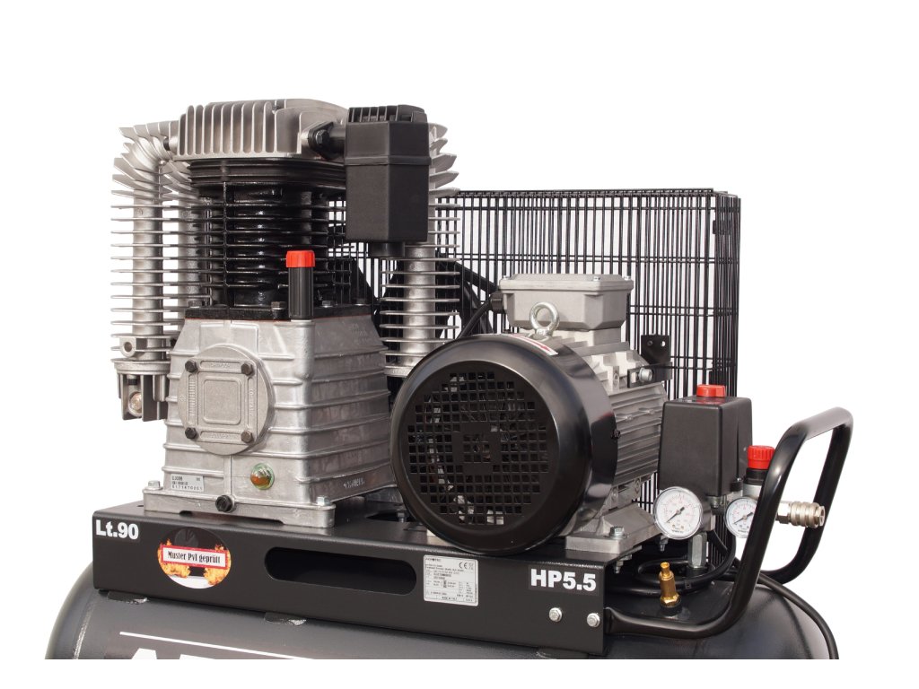 Dvouválcový řadový agregát: Kompresor je vybaven dvouválcovým řadovým agregátem, který je poháněn klínovým řemenem. Tento systém zajišťuje rovnoměrný chod a vysokou účinnost.