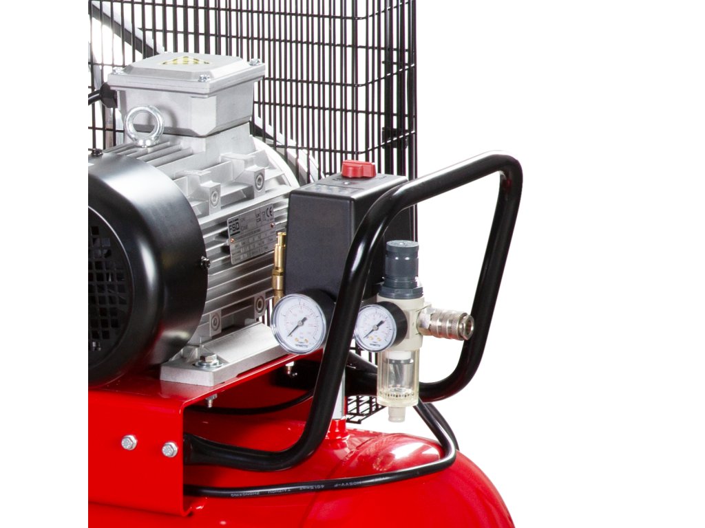 Pístový kompresor Fini BK 119-90-5,5T na 90 litrové nádobě a elektrickým připojením na 400 V. S plnícím výkonem 520 l/min je to vhodný kompresor pro dílny, truhlárny, menší autoservisy a průmyslové provozy, kde je potřeba větší množství vzduchu v daný okamžik, vzhledem k menší tlakové nádobě. Neni vhodné třeba pro lakýrnické práce, kde je lepší větší tlaková nádoba.