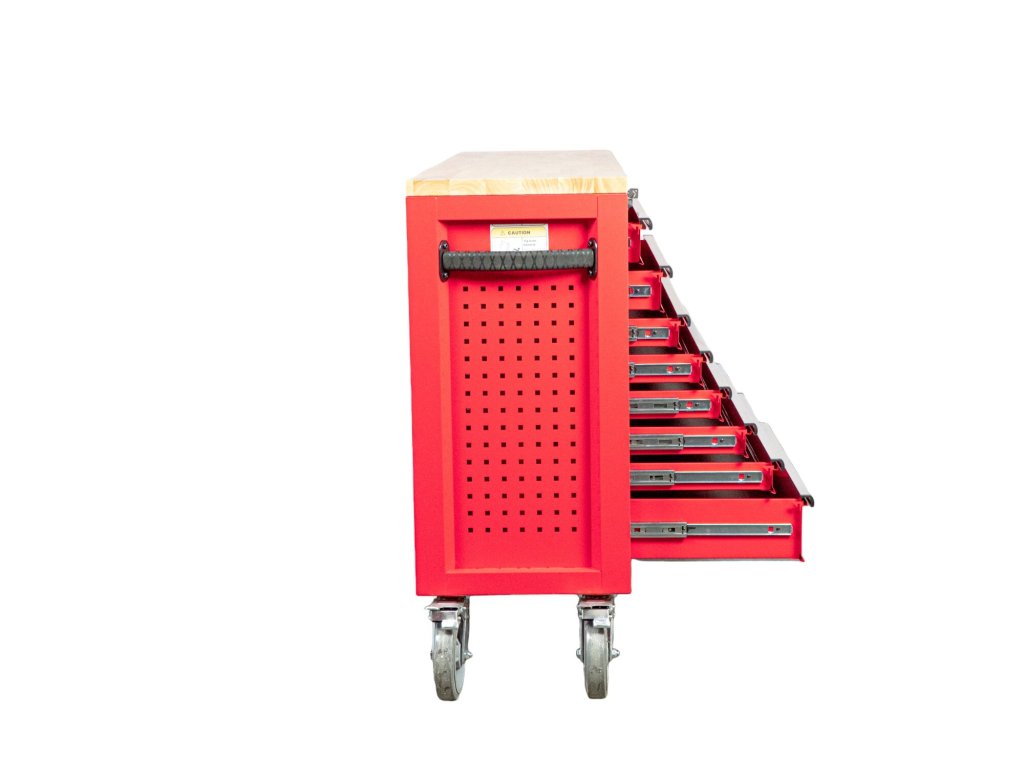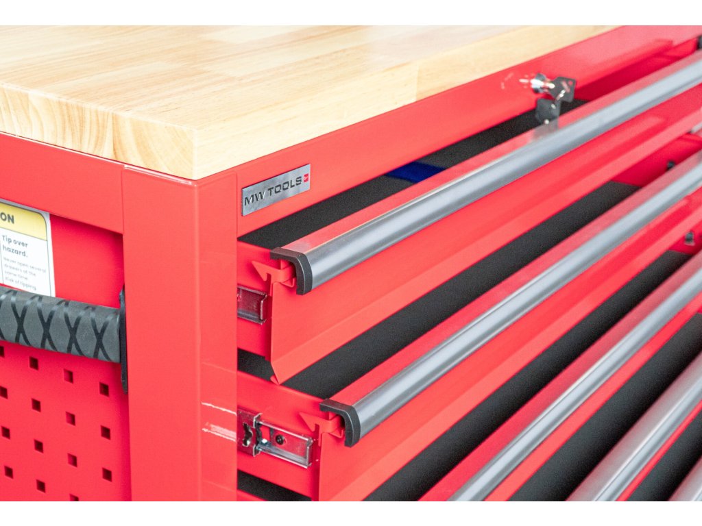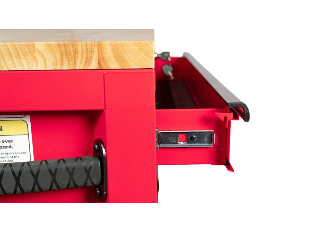 Vrchní deska je vyrobena z vysoce kvalitního bukového dřeva a poskytuje vynikající pracovní plochu pro práci na místě. Tento vozík je vhodný pro intenzivní použití v profesionální dílně.