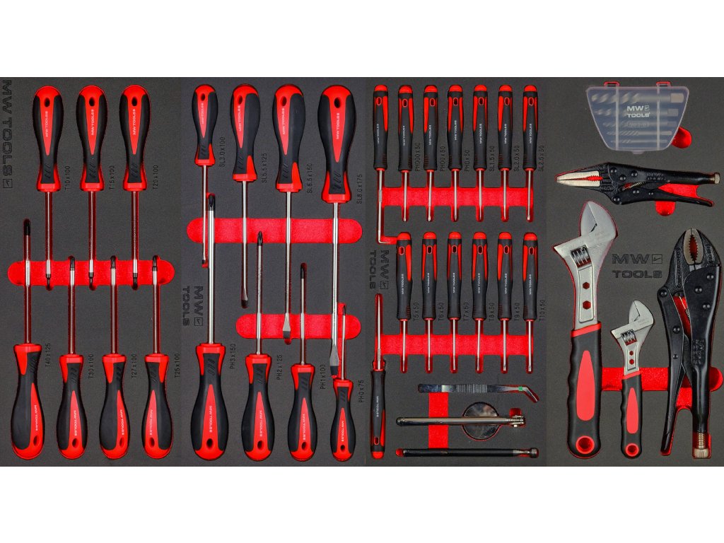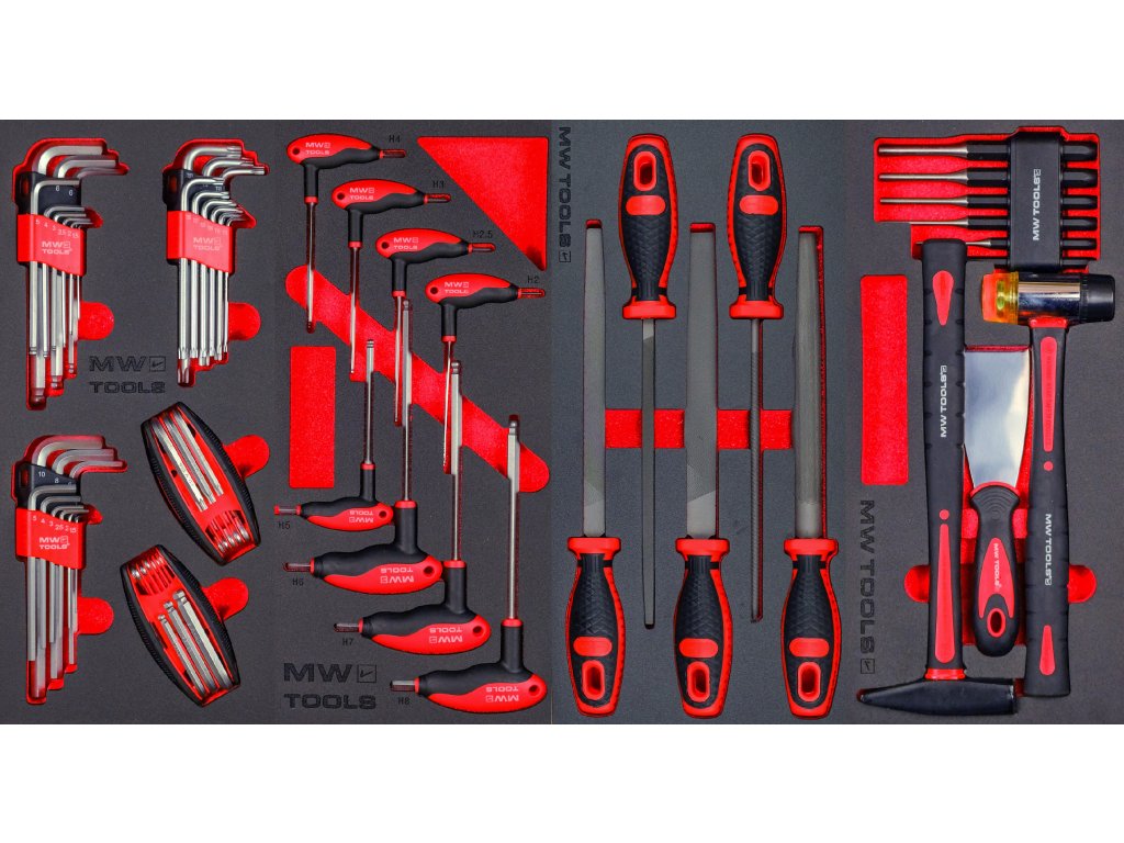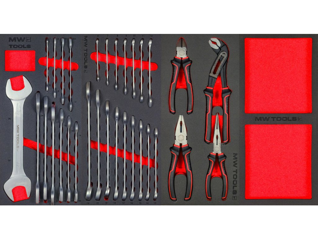 Nástroje MW TOOLS jsou uloženy v unikátních pěnových modulech: