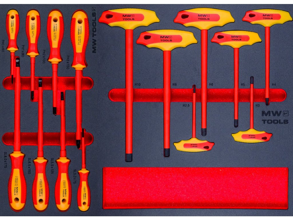 Každý nástroj MW TOOLS je na svém místě, což zaručuje zvýšenou efektivitu, komfort a bezpečnost . Můžete tak bezpečně přistupovat k požadovaným nástrojům přímo, aniž byste ztráceli čas , protože požadované nástroje jsou uloženy na správném místě . Díky tomuto optimalizovanému uložení v kompletní skříni na nářadí MW TOOLS již odpadá přerušení a prostoje při hromadném hledání vašich nástrojů.