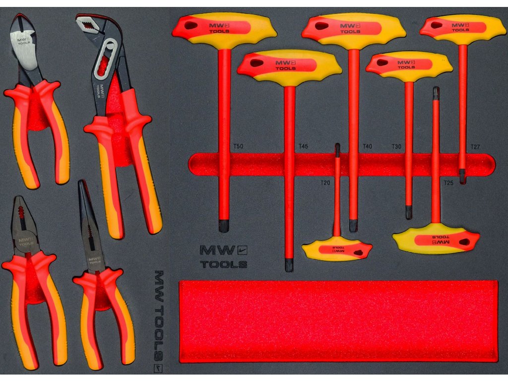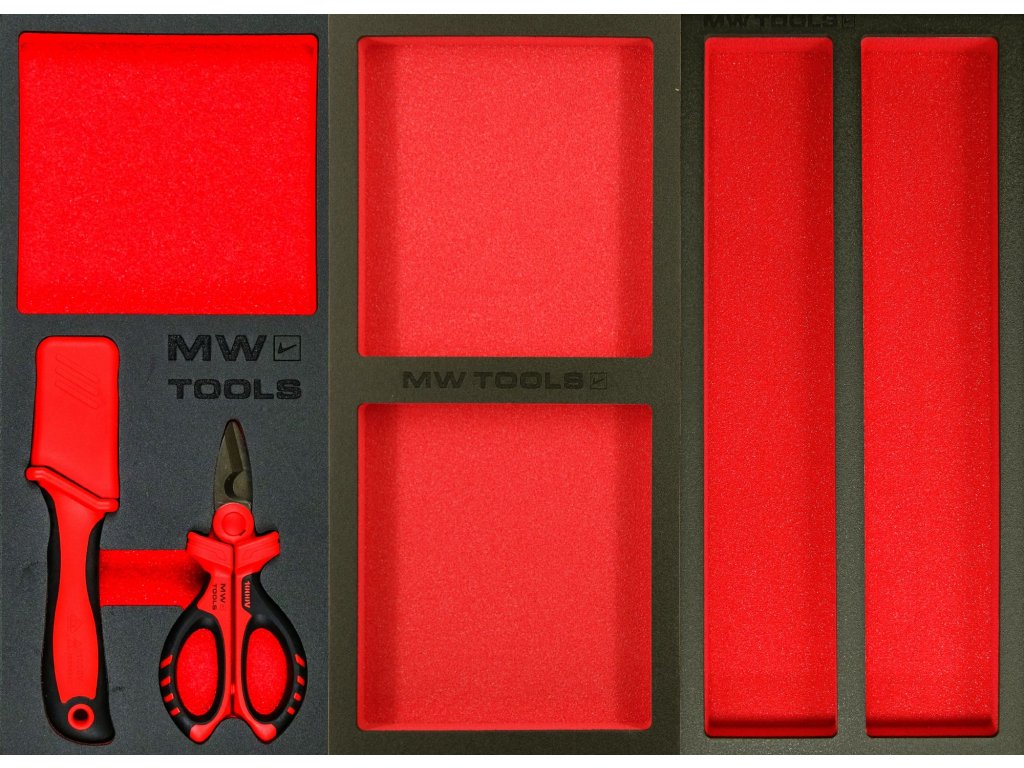 Červený a černý pěnový modul MW TOOLS vám umožní uspořádat a úhledně uložit vaše nářadí ve vaší skříni.