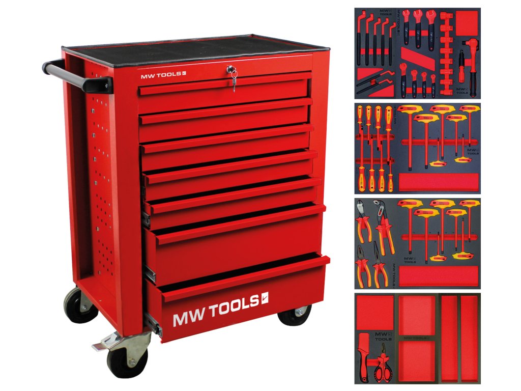 Pojízdný dilenský vozík s nářadím MW-Tools MWE59R - 53 kusů nářadí