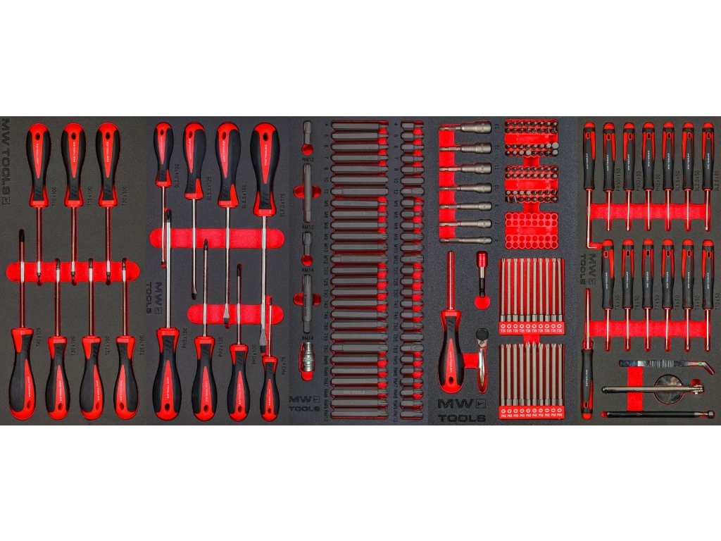 Nástroje MW TOOLS jsou uloženy v unikátních pěnových modulech: