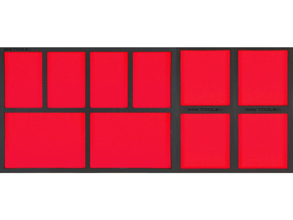 Dvoubarevné červené a černé moduly FOAM zásobníků z pěnových zásobníků MW TOOLS vám umožní uspořádat a úhledně uložit nářadí ve vašem vozíku na nářadí.