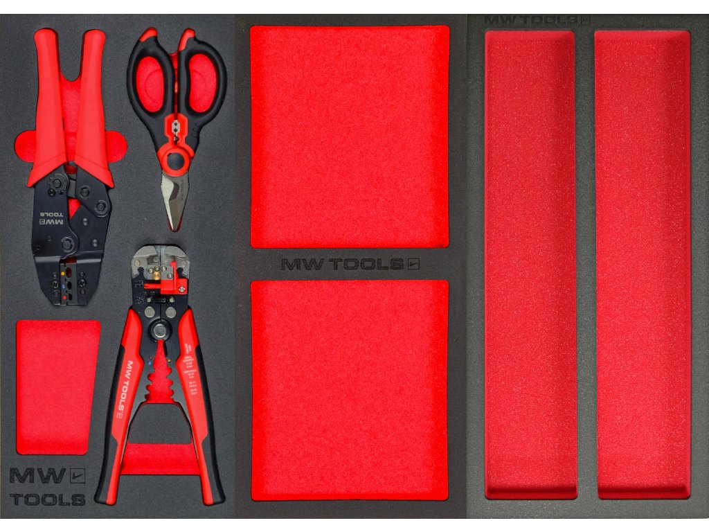 Červený a černý pěnový modul MW TOOLS vám umožní uspořádat a úhledně uložit vaše nářadí ve vaší skříni.