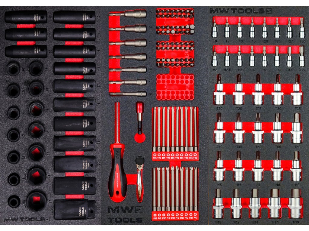 Nástroje MW TOOLS jsou uloženy v unikátních pěnových modulech: