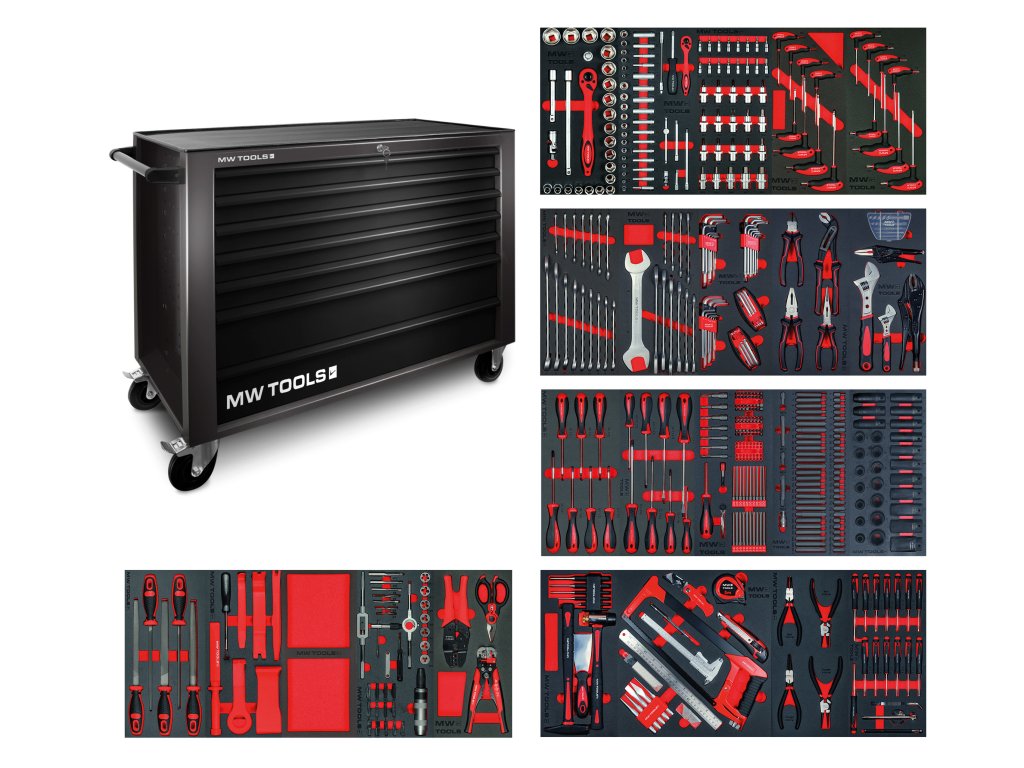Každý nástroj MW TOOLS je na svém místě, což zaručuje zvýšenou efektivitu, komfort a bezpečnost . Můžete tak bezpečně přistupovat k požadovaným nástrojům přímo, aniž byste ztráceli čas , protože požadované nástroje jsou uloženy na správném místě . Díky tomuto optimalizovanému uložení v kompletní skříni na nářadí MW TOOLS již odpadá přerušení a prostoje při hromadném hledání vašich nástrojů.