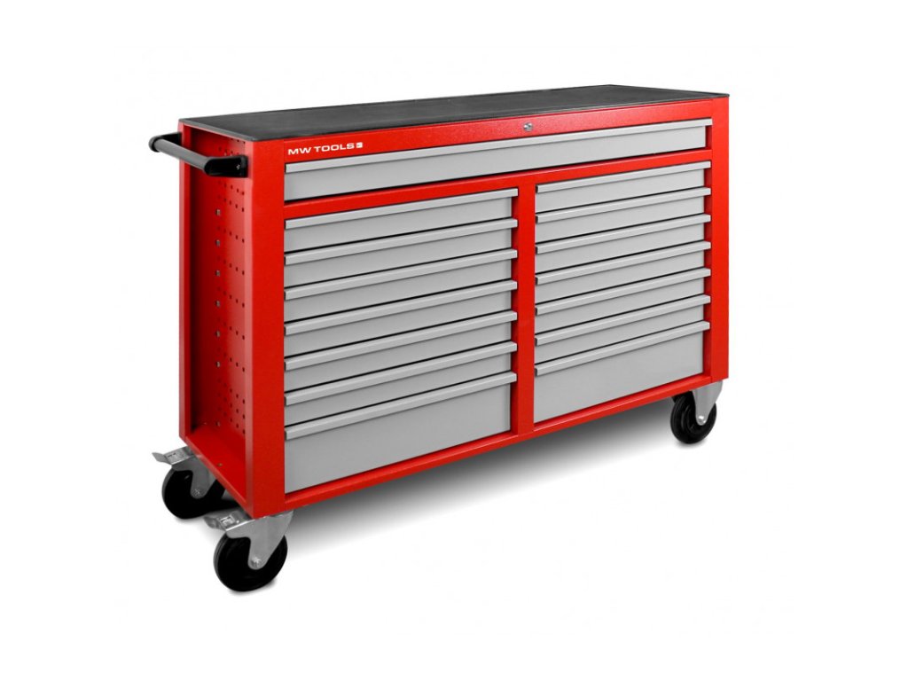Tyto nástroje jsou dodávány ve skříni na nářadí GW115, široké (1450 mm) a robustní, s 15 zásuvkami, vybavené extra velkou odkládací zásuvkou.