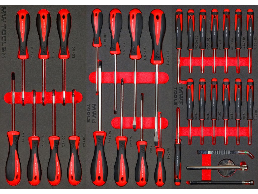 Nástroje MW TOOLS jsou uloženy v unikátních pěnových modulech: