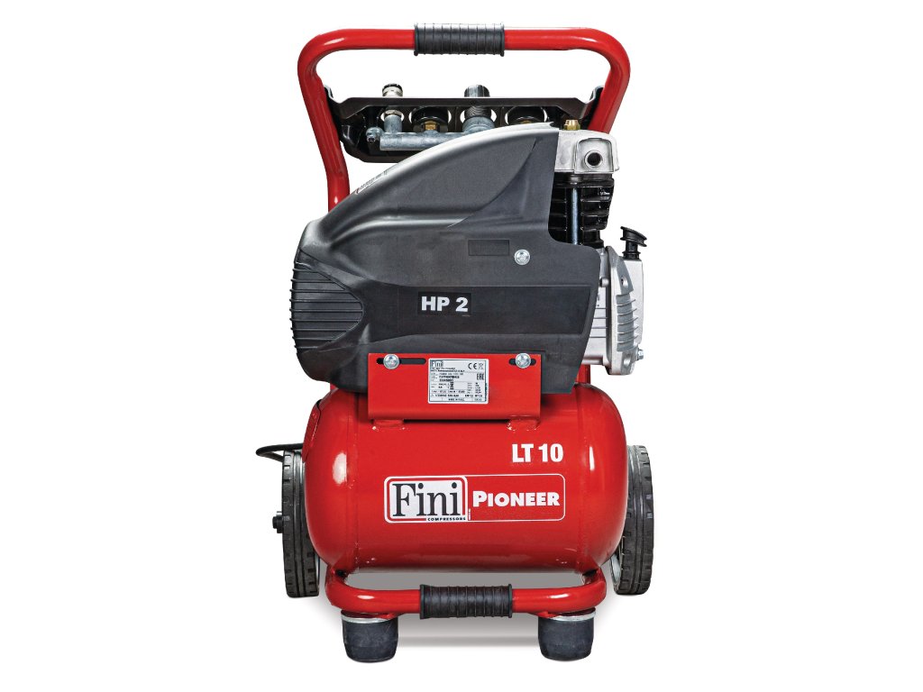 Pojízdný pístový kompresor Fini Pioneer 265M s 10l tlakovou nádobou. Přehledný panel umožňuje snadnou regulaci a připojení vzduchu. Snadná manipulace a převoz na stavbách, díky širokému rozvoru a velkým kolům.