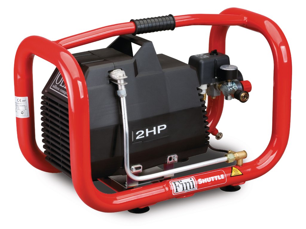 Přenosný pístový kompresor Fini Shuttle OL230 s plnícím výkonem 110l/min je ideálním řešením pro řemeslníky, kteří potřebují menší, přenosný kompresor.