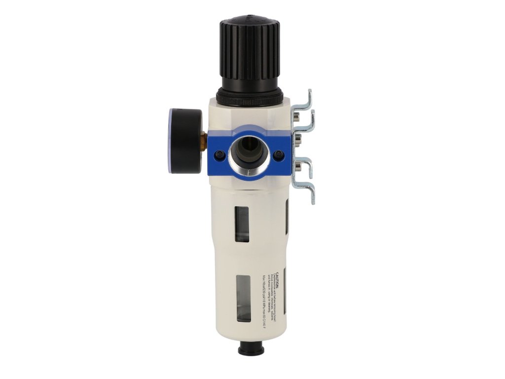 Tento regulátor tlaku s filtrem je nezbytným doplňkem pro každého, kdo chce zajistit, aby jeho pneumatické nástroje pracovaly na špičkové úrovni a bez zbytečných přerušení.