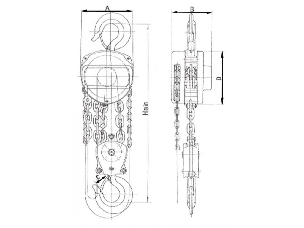 1,5 tunový řetězový kladkostroj s délkou řetězu 2,5m.