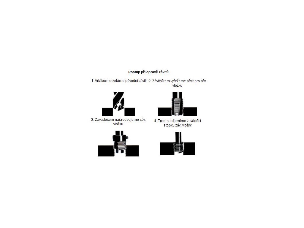 Vrtání: Poškozený závit vyvrtejte běžným spirálovým vrtákem. V případě závitů na zapalovací svíčky není žádné předvrtání nutné, používá se kombinovaný vrtací a závitníkový nástroj. Pamatujte, že v případě tvářecích závitníků je nutné použít větší vyvrtaný otvor.
