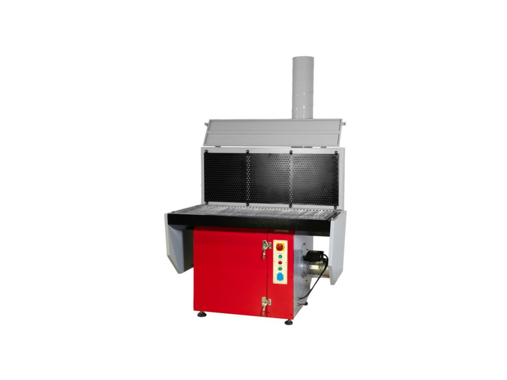 Pracovní stůl s odsáváním prachu, dýmů a par, pro svařování, řezání, laserové svařování, broušení, broušení, leštění a čištění dílů z různých kovů a materiálů.