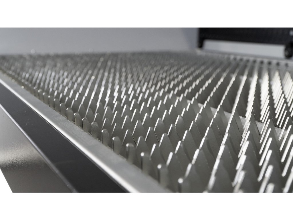- Stroj je standardně dodáván s otevřeným řezacím stolem s nosností 100 kg. Tento stůl je vyroben z ocelových V-bodů a je ideální pro řezání, svařování, laserové svařování atd.